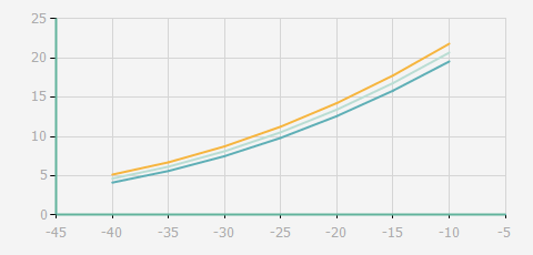| 蒸發(fā)溫度 | 制冷量+/-5% | 能耗+/-5% | 現(xiàn)在能效+/-5% | 氣體流速+/-5% | 能效+/-7% | ||||
