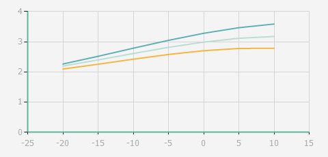 | 蒸發(fā)溫度 | 制冷量+/-5% | 能耗+/-5% | 現(xiàn)在能效+/-5% | 氣體流速+/-5% | 能效+/-7% | ||||